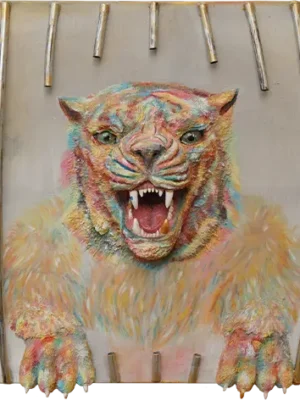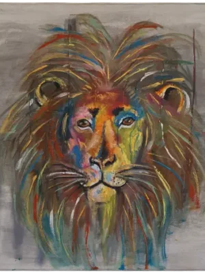 Ein farbiger Löwe, der trotz grauer Vergangenheit stolz und lebendig die eigene Unbesiegbarkeit verkörpert – ein Bild, das mich dazu inspiriert hat, weitere 14 Kunstwerke zu erschaffen und meinen kreativen Traum zu verwirklichen. -